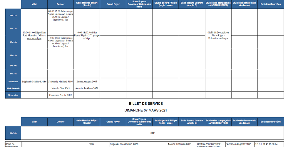 Demain, José revient répéter, on prépare l'arrivée d'Abou Lagraa et dernière journée d'auditions (si j'en perds quelques uns, merci de m'appeler, mais normalement tout est fléché). Dimanche OFF. Lundi c'est le 8 mars.